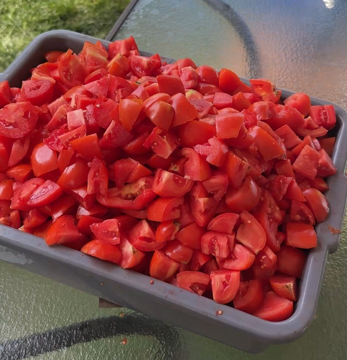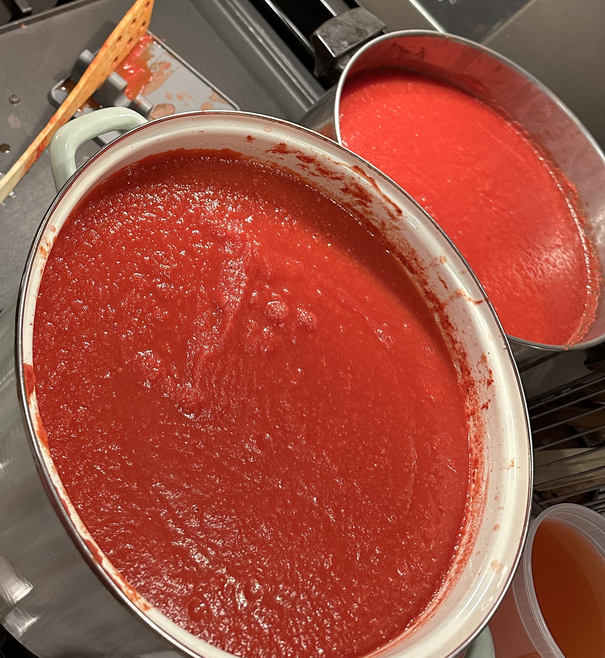 At one point, we were shuffling tomatoes back and forth between bowls, pots, and tubs just to keep the process moving. Having extras on hand made the day so much smoother.